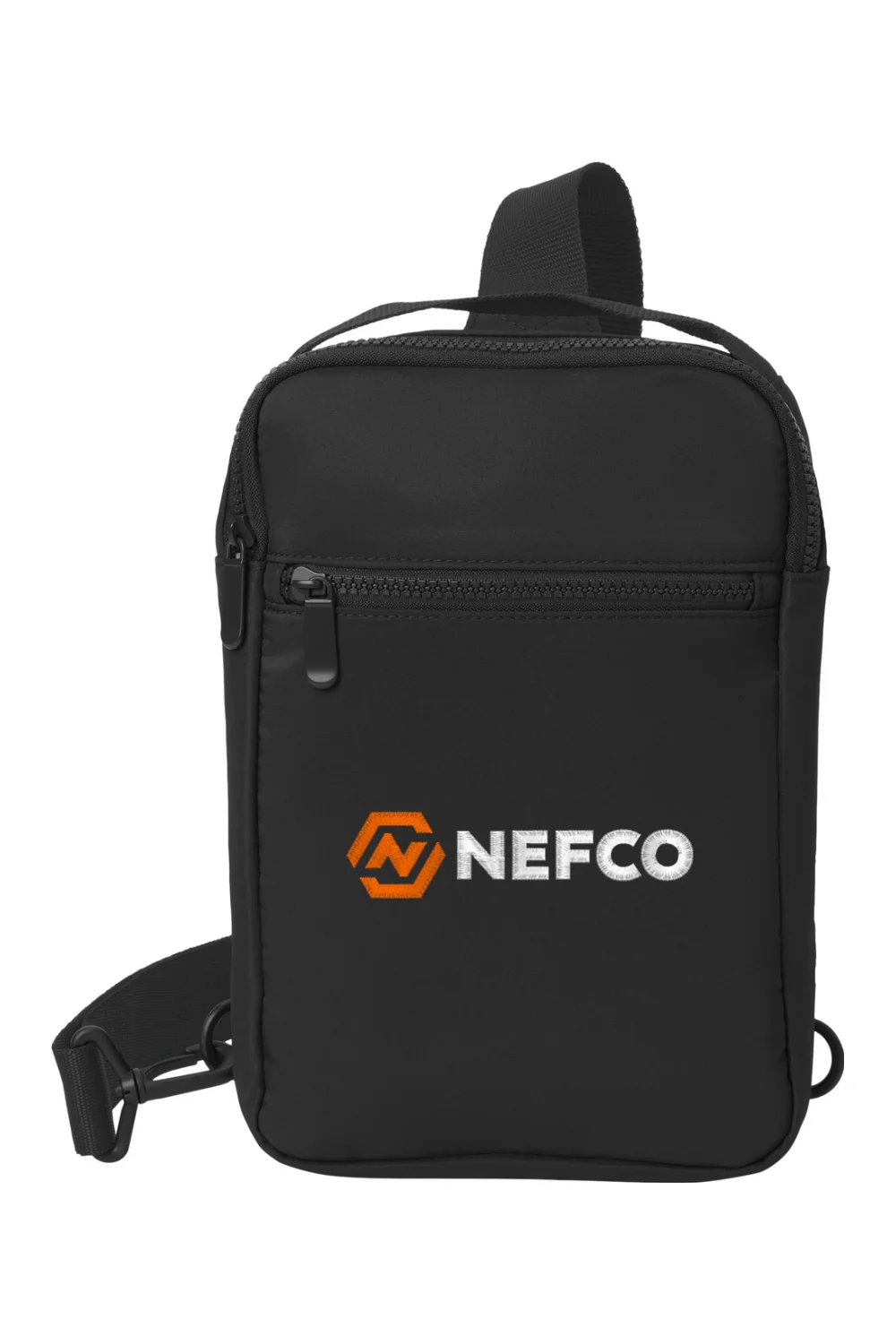 The Matte Sling is a compact and versatile crossbody bag designed for convenient everyday carry. Made from smooth matte polyester with knitted cloth, it features a zippered main compartment and a front zippered pocket for organized storage. Dyed to match molded zippers and metal pulls create a clean, cohesive look, while the adjustable ambidextrous shoulder strap allows comfortable wear. A web carry handle adds grab and go convenience. Dimensions: 11 in H x 7 in W x 2.25 in D. Finished with an embroidered logo on the front for a clean, modern detail.